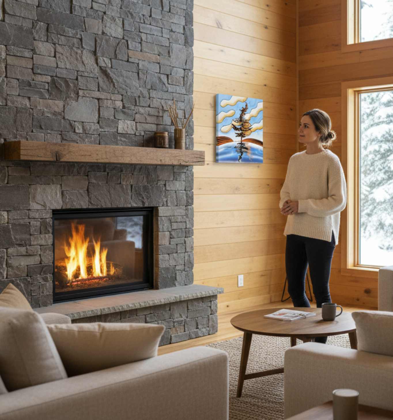 Inspired by campfire days, Day Fire at Whiskey Bay glows with wild warmth and a modern, dreamlike spark. Make this part of a special room!