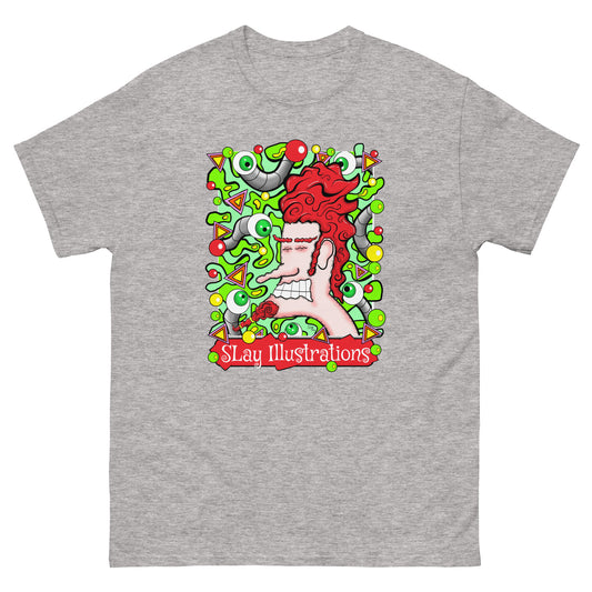 Step into the world of the Groovy T-Shirt Collection — Canadian created, SLay Illustration designed, unisex classic tee, where the vibrant vibes of the 1960s collide with 21st Century urban streetwear clothing aesthetic. College-inspired fashion, Campus-ready style with vintage vibes. This unique and stylish clothing line bursts with psychedelic colours, funky designs, and a cosmic twist.